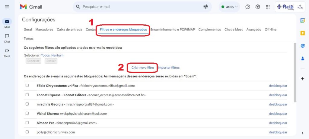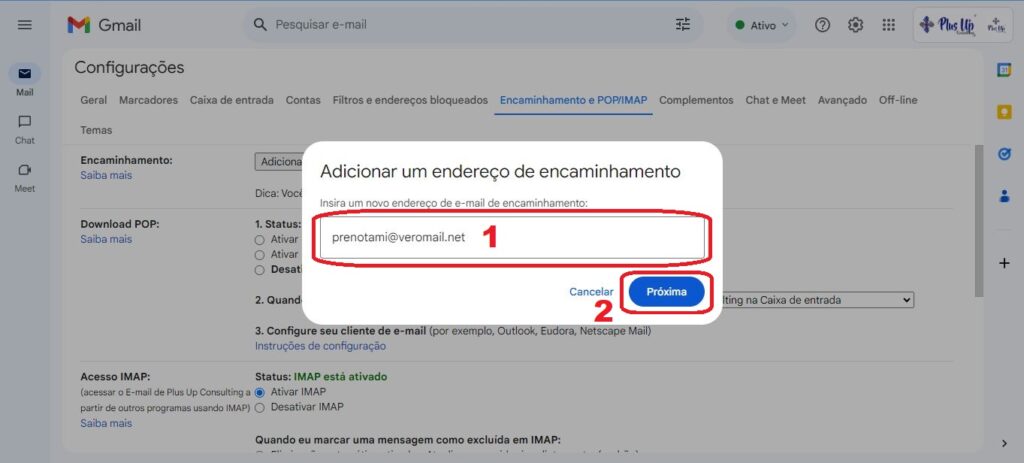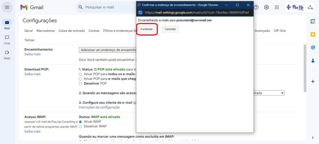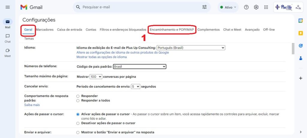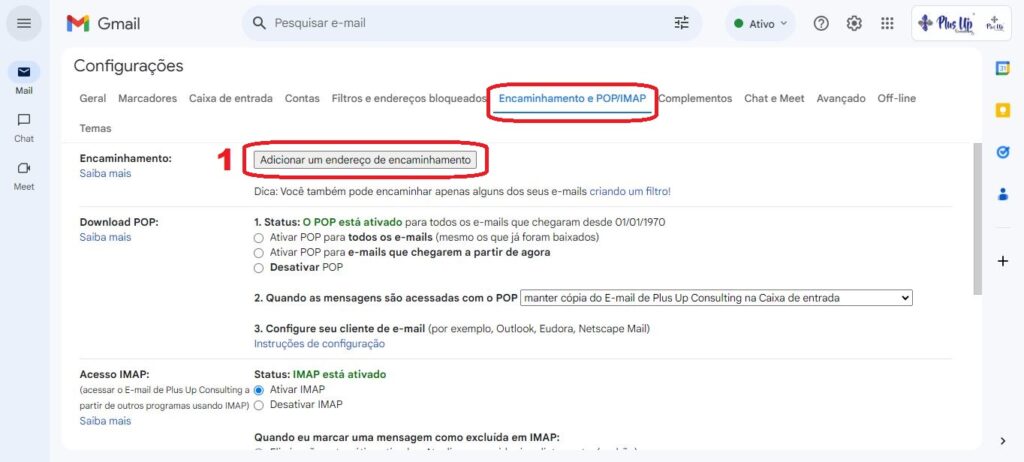 Vamos te orientar, passo a passo, sobre como configurar o redirecionamento automático do Gmail para a Plus Up Consulting.