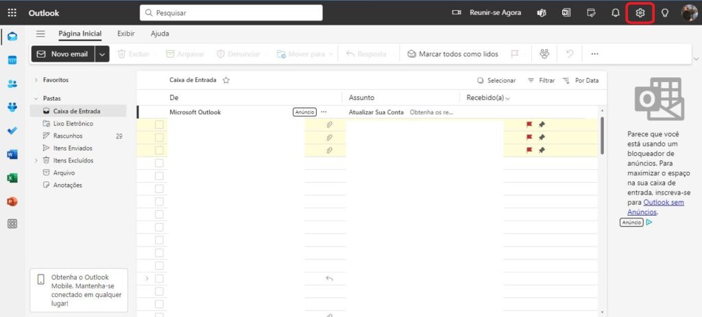 Passo 2: No canto superior direito da tela, clique em “Configurações” ou “Preferências” para acessar as opções de configuração de e-mail.
